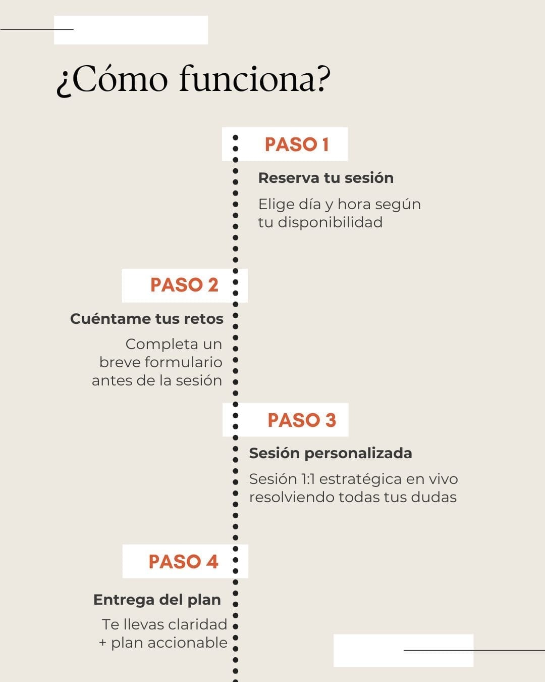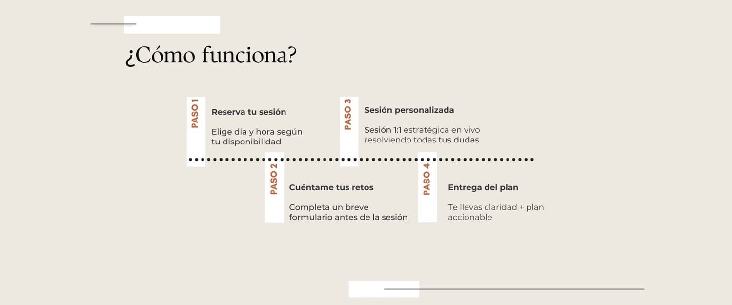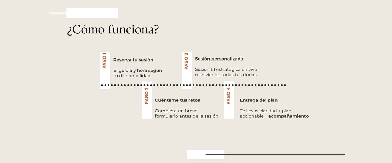 Durante la sesión trabajamos tu estrategia en tiempo real. Al finalizar, tendrás claridad y un plan accionable para empezar a ejecutar de inmediato.