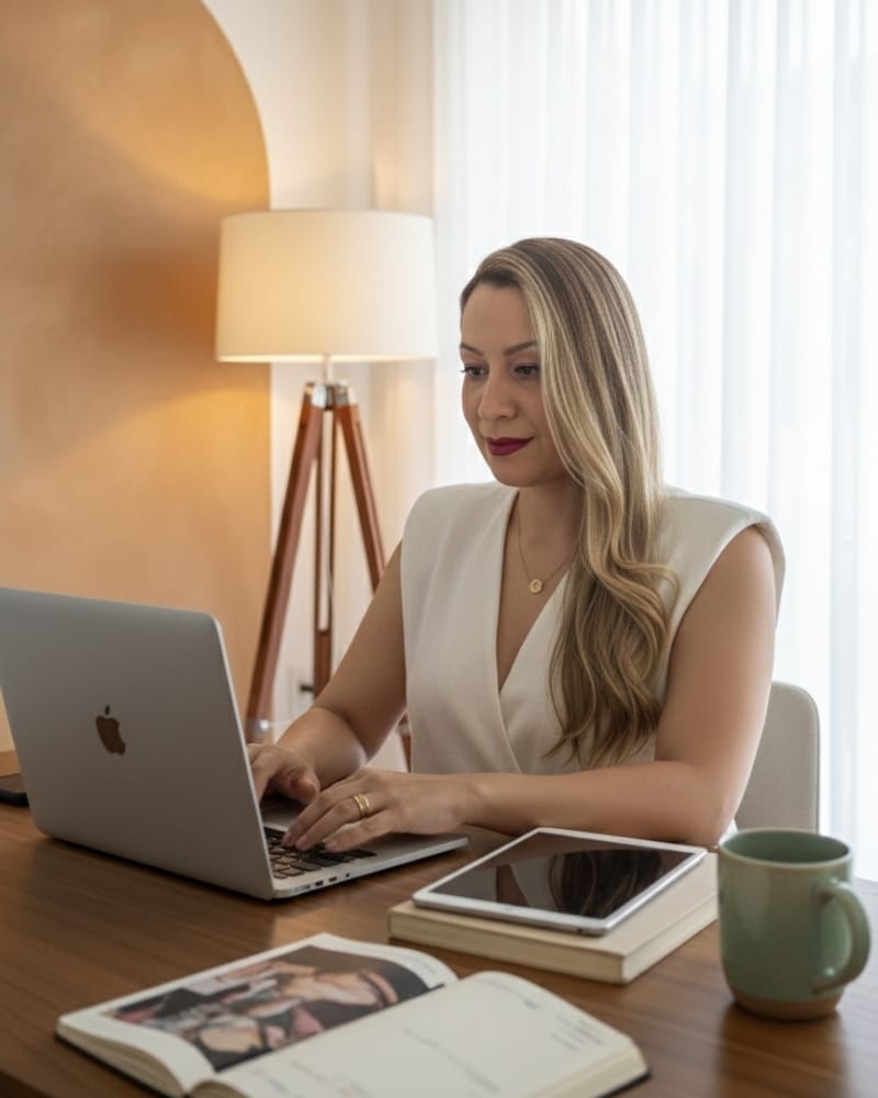 Mi enfoque no es darte más información, sino ayudarte a ordenar ideas, tomar decisiones claras y construir un sistema que se adapte a tu marca y a tu forma de comunicar.