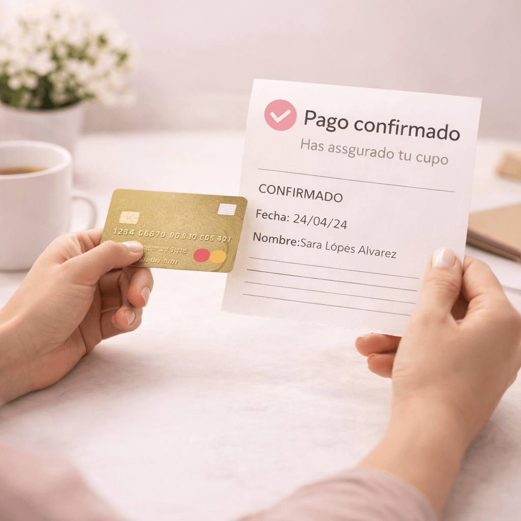 Confirmas tu acompañamiento realizando el pago y aseguras uno de los cupos disponibles este mes.