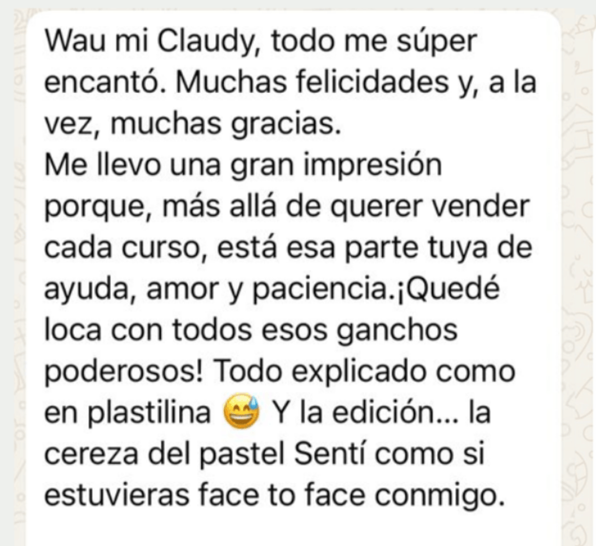 Cuando mis alumna me escribe esto… Me recuerda por qué hago lo que hago. Así es como se vive Ganchos de Poder